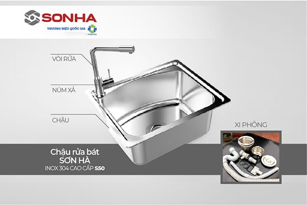 1. Chậu rửa bát cao cấp S50D1.3 ( Kiểu dáng 1 hỗ đơn ) của Sơn Hà được sản xuất trên dây chuyền công nghệ Hàn Quốc hiện đại nhất Việt Nam hiện nay. CHẬU RỬA được sản xuất bằng inox Sus 304 với kích thước lòng chậu sâu, công nghệ ép liền không hàn mài. Sản phẩm thân thiện với môi trường, bảo vệ sức khỏe cho cả gia đình, tính năng chống ồn, chống ngưng tụ nước... giúp tăng độ bền cho sản phẩm chậu rửa inox.